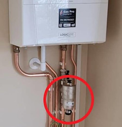 The filter can normally be found on the piping underneath your boiler (see image below) and will have a valve on the underside of it.